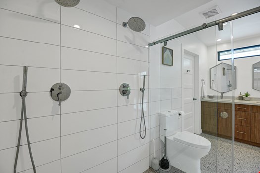 The kitchen is well equipped with everything you'll need to prepare and cook for the whole family. The 10 ft. kitchen island has ample space for food prep and provides a great gathering spot for wine, cheese and pre-dinner nibbles. The separate bar area provides even more counter space and includes a wine refrigerator. Each of the large bedrooms has a smart TV and plenty of closet and storage space. Both guest bedrooms look west to gorgeous mountain views but also have blackout shades for those days when you need that extra hour of sleep. The custom guest bath has a double vanity and walk in shower. The master bath features a double vanity, large walk in shower and a walk in closet. The master bedroom sliding door opens to the pool and spa providing incredible mountain views and a variety of lounging areas to enjoy the desert landscape.